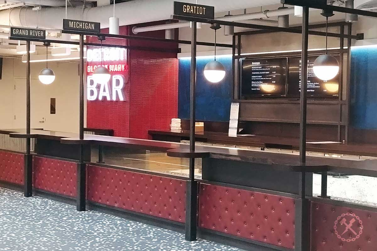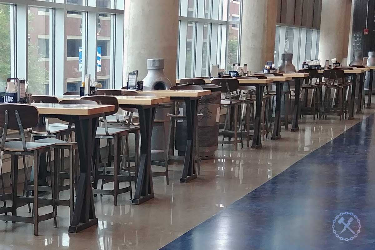 IFM Scope: Extensive common area decorative metals package at suites and restaurants including over 170 custom tables in 5 styles, custom metal paneling, and drink rails.